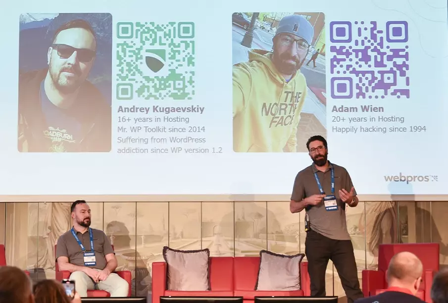 WebPros Product Managers Adam Wien and Andrey Kugaevskiy presented “WordPress & WebPros: Elevating UX & Fortifying Security in the WordPress Universe.”